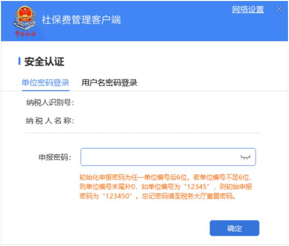 选择“单位密码登录”,输入申报密码,登录社保费管理客户端。。