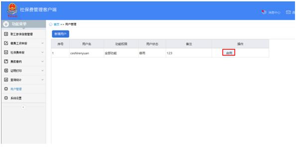 若需要重新启用某用户,管理员可点击操作列启用按钮。