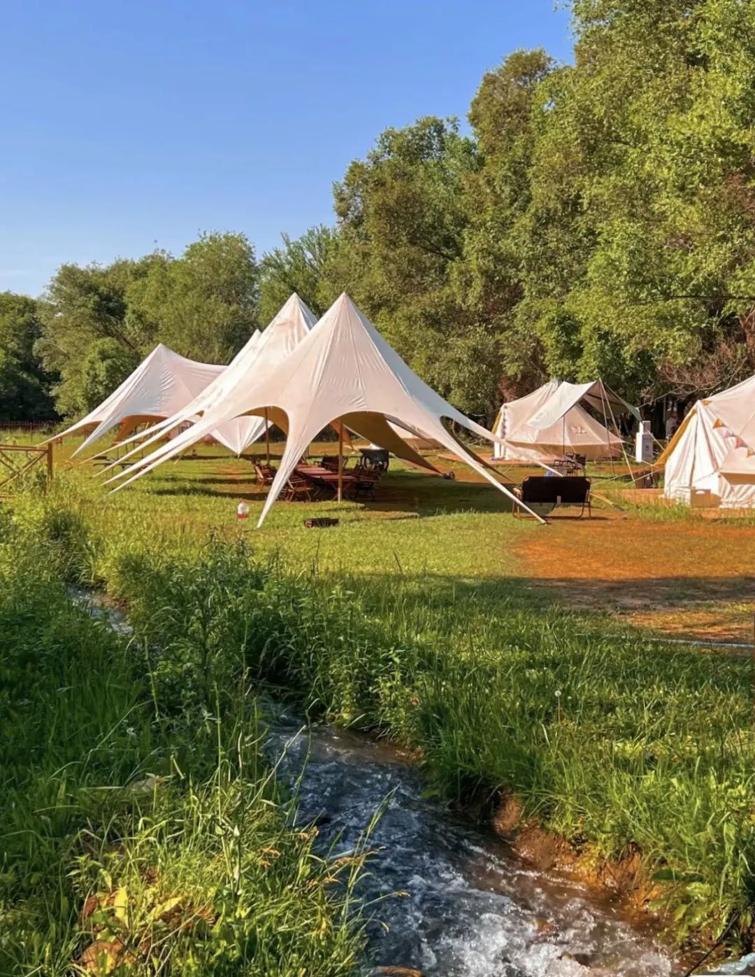 石人农场有很多种露营打开方式,可以自带帐篷桌椅露营乘凉,也可以自助烧烤享受美味,还可以拎包入住专业营地,多款帐篷、星空房供你选择。