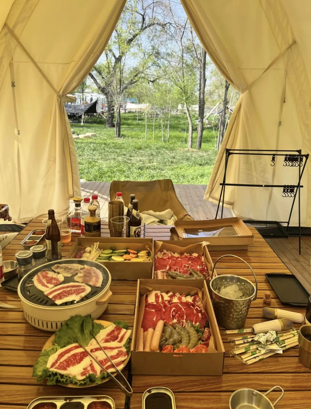 价格:自带餐食每位59元(提供露营设备、烤炉等等);营地提供餐食,每位128元无限畅吃,场地不限时,全天免费。