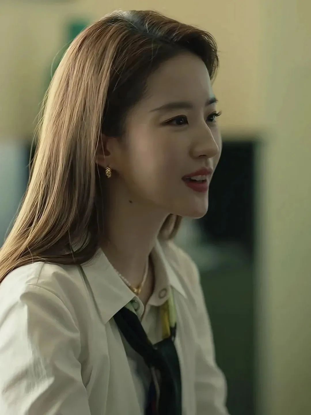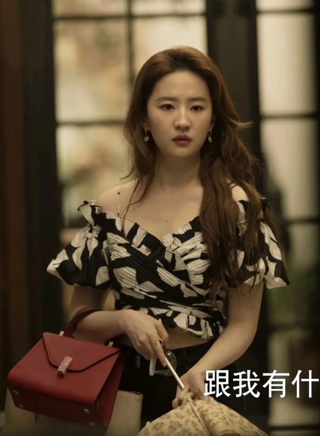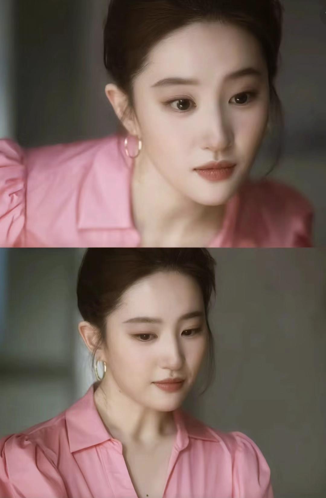 由于刘亦菲本身有点溜肩,所以她在剧中换上了各种夸张的、蓬蓬的泡泡袖、灯笼袖上衣,有效从视觉上有所改善,同时职场人的气场也撑起来了。