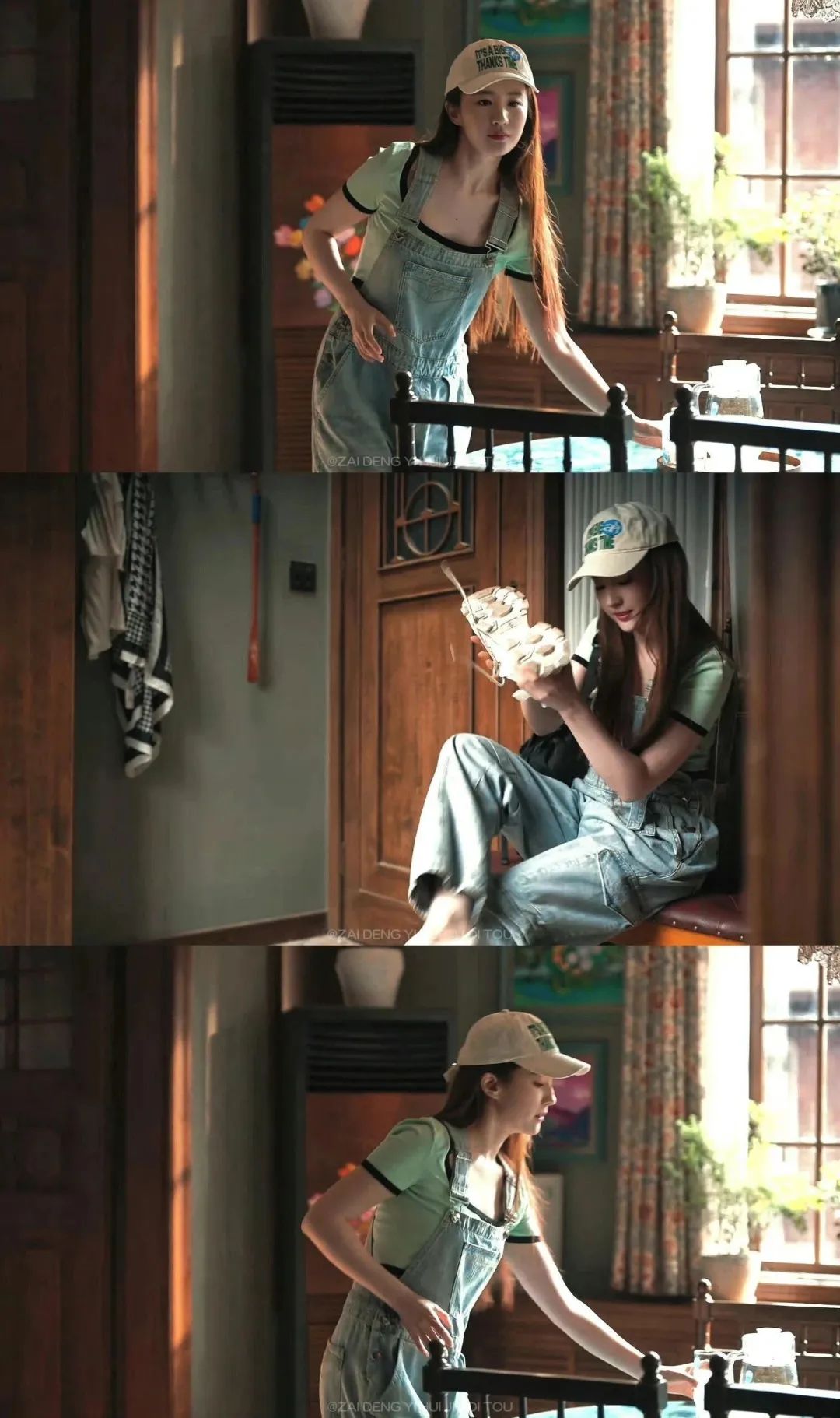 黄亦玫以酷飒随性的轮滑装束闪亮登场,宽松牛仔背带裤搭配薄荷绿色紧身上衣,鸭舌帽下连头发丝都散发着明媚的气氛,妥妥的元气女大视感。
