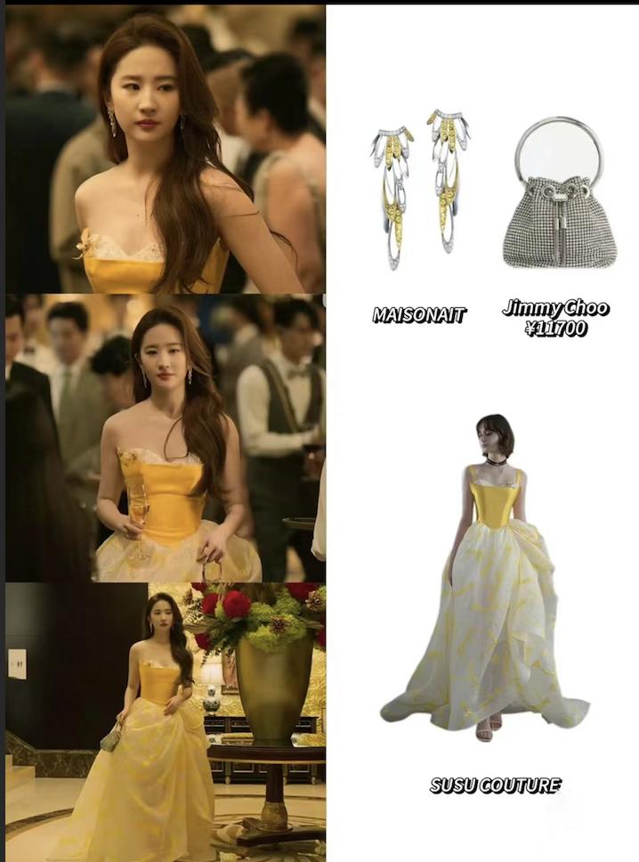 这套黄色礼服,仿佛幻视迪士尼公主!黄白配色既有女大的明朗,也不失职场人的自信,和剧里22岁的设定也相当契合。