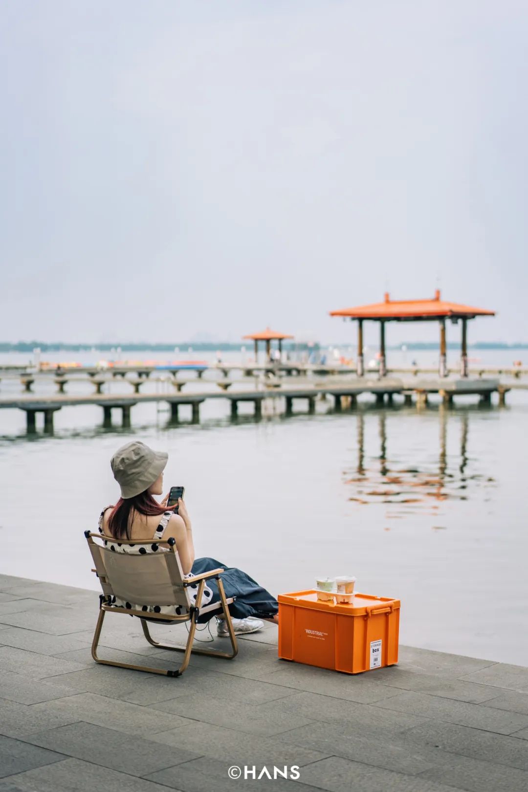 室内位置有限,室外露营椅自取,随手放一把在湖边坐着,就能框出自己的海景。画一样的东湖咖啡馆,每个人既是创造者,也是参与者。