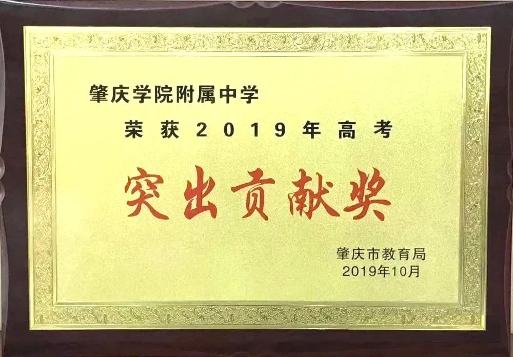 ②荣获肇庆市2019年“高考突出贡献奖″。