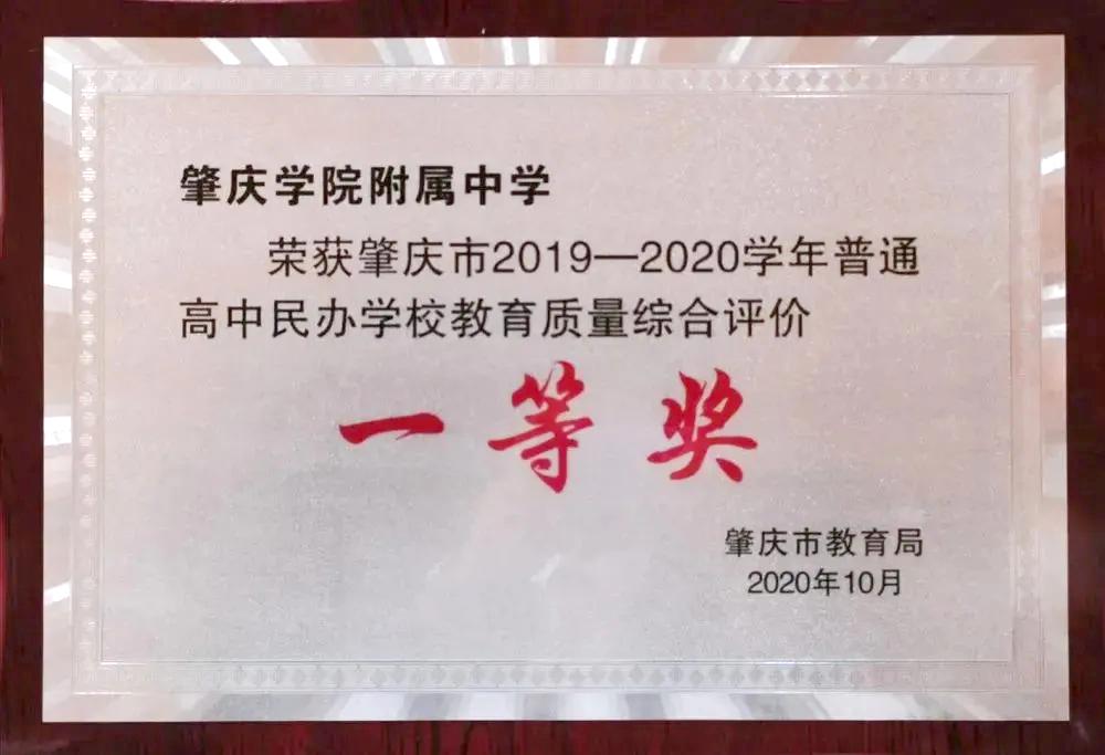 ③荣获肇庆市2019-2020学年度普通高中民办学校教育质量综合评价一等奖,是该年度全市唯一获此项荣誉的民办学校。