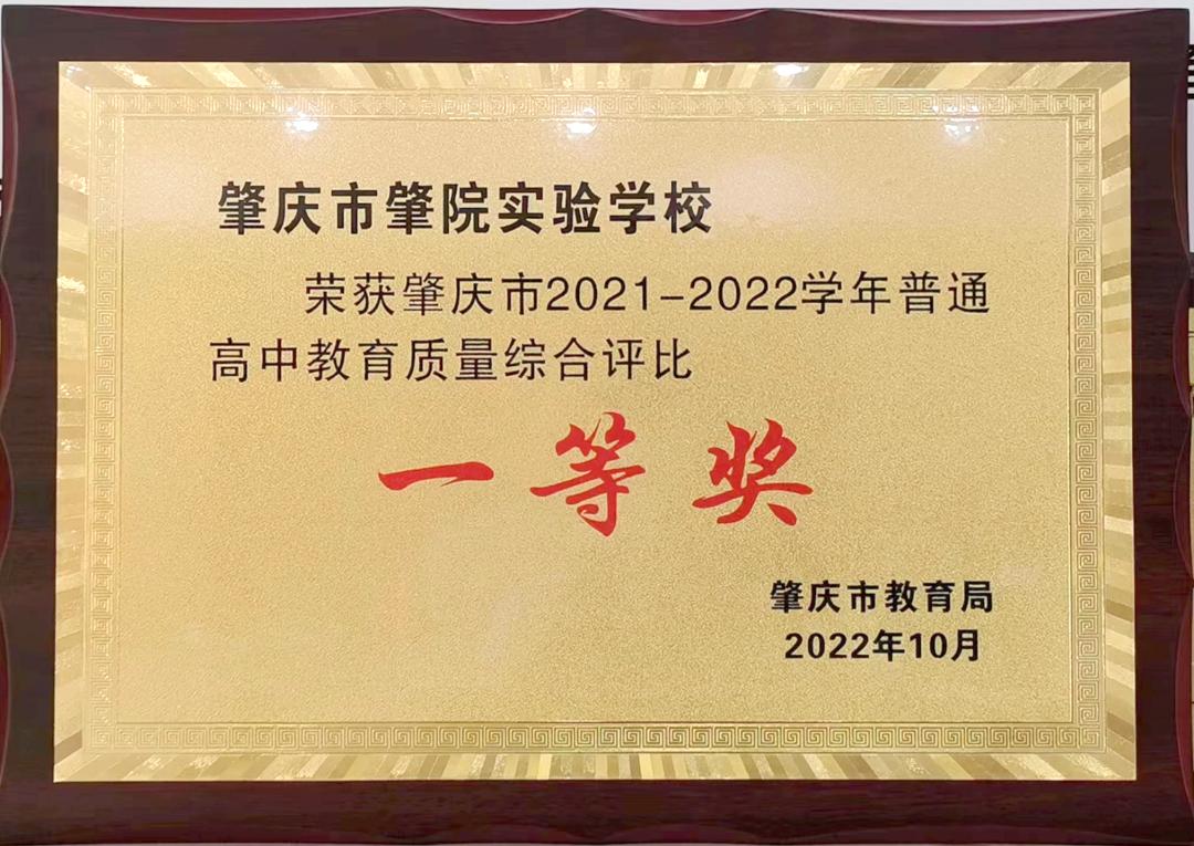④荣获肇庆市2021-2022学年度普通高中民办学校教育质量综合评价一等奖。