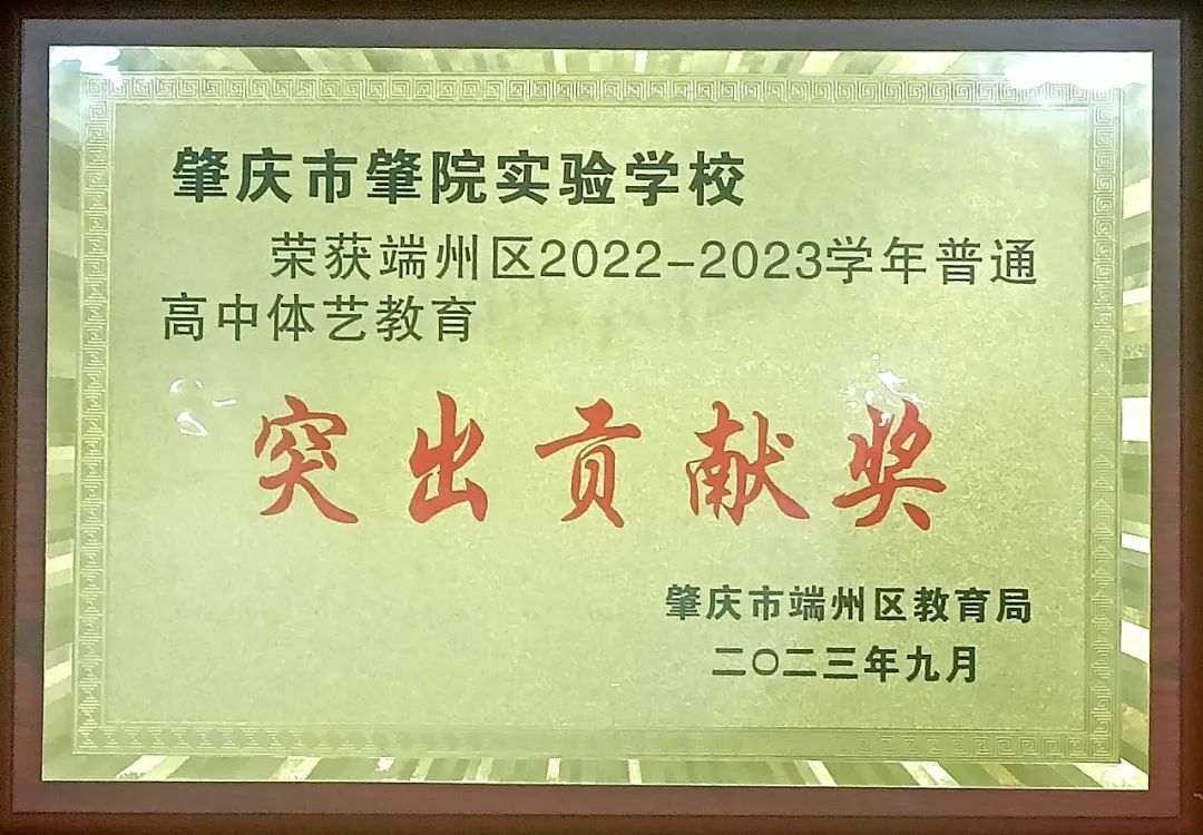 荣获端州区2022-2023学年普通高中体艺教育"突出贡献奖"