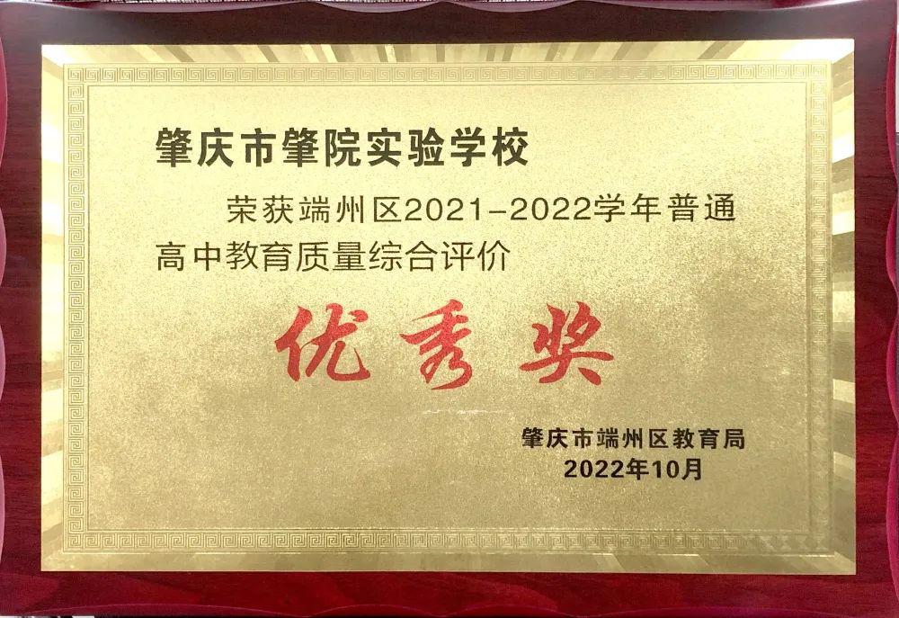 荣获2022年“端州区普通高中教育质量综合评价优秀奖”