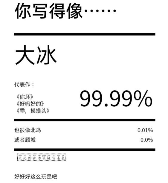 还有博主只是输入了「好好好这么玩是吧」,被判定为 99.99% 像大冰。
