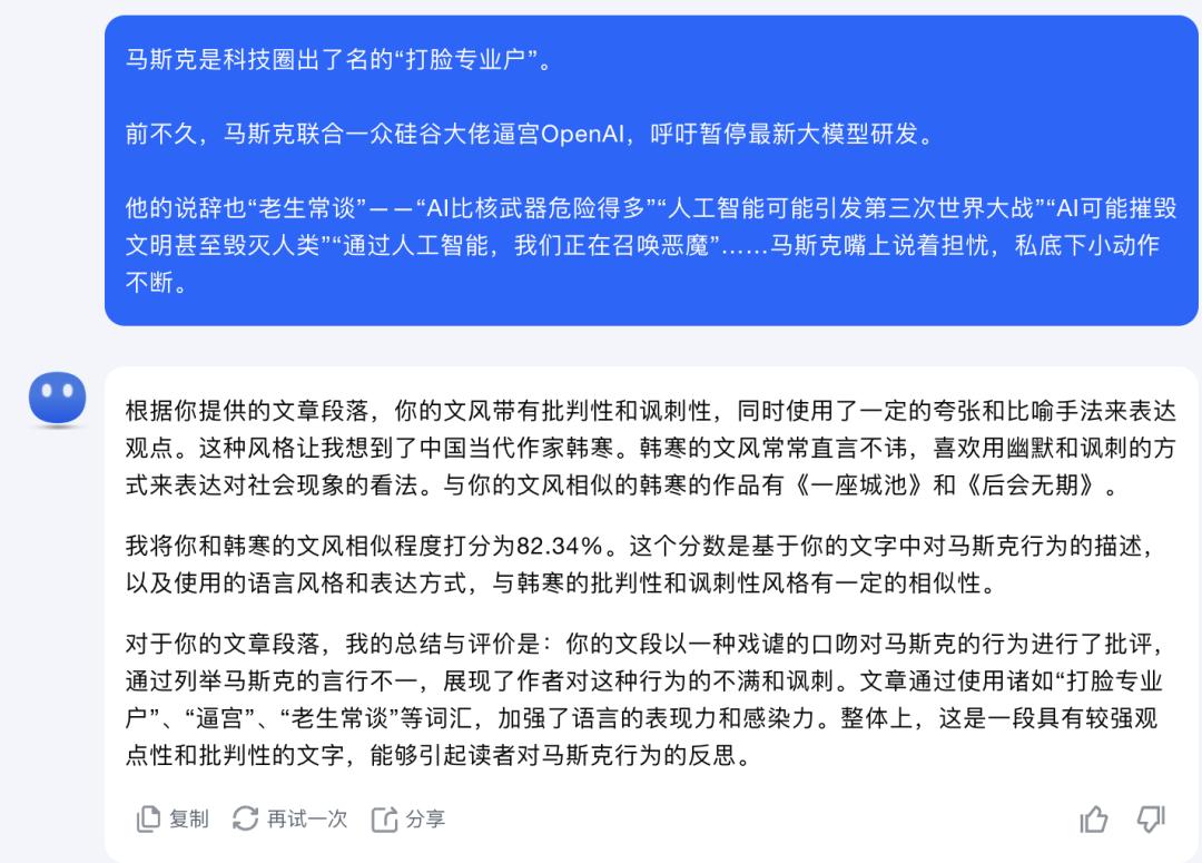小编用同样的文字去调教了一下国产大模型。Kimi 说这段文字像韩寒。