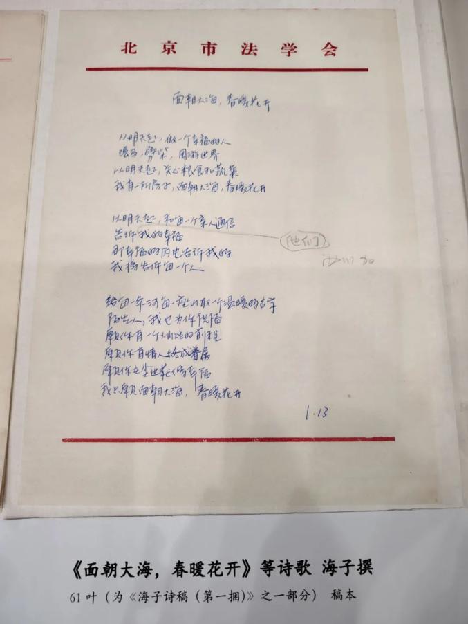 5月27日,海子手稿永久寄存国家图书馆刚才曙明(海子大弟弟)已经做了一个很好的致辞,其实我也没有必要说更多的了。海子的诗歌手稿现在寄放在了国家图书馆,我内心里忽然觉得很踏实。国图我以前来过,但第一次进到这个会议室。进来一看,这边墙上是米芾的字,那边是古地图,感觉国图这品位非常高。海子手稿能够最终寄放在对文献如此珍视的地方,我想这也了了海子自己的心愿——如果他依然有感受的话。刚才张馆长提到,以前还入存了梁启超《饮冰室全集》的手稿,也是寄存的形式。这样说来,海子在这里会很愉快地遇到梁任公,并有一些交流。