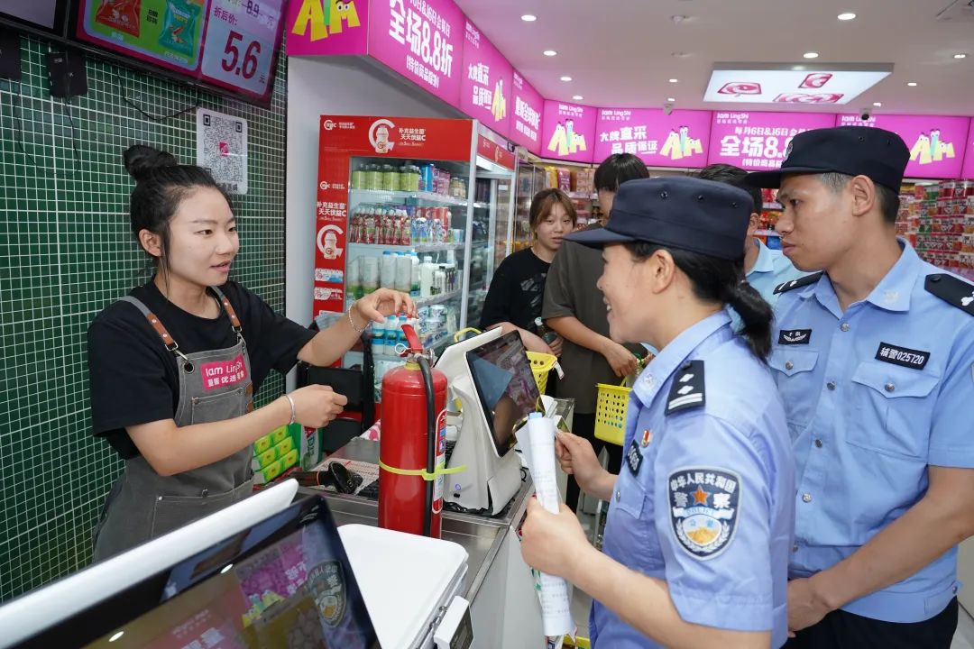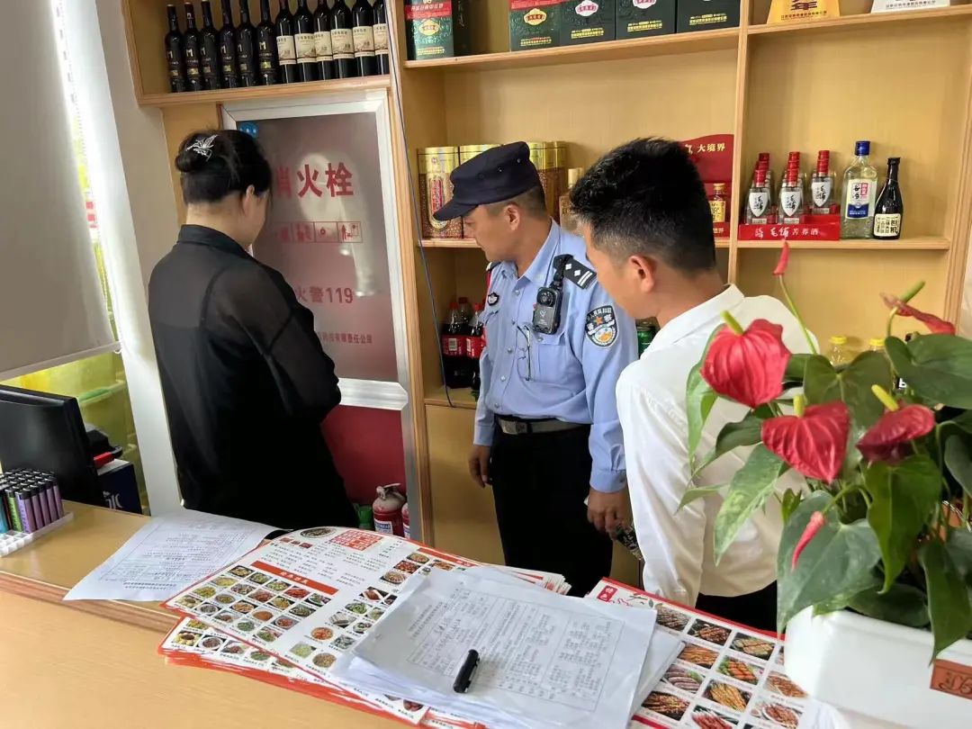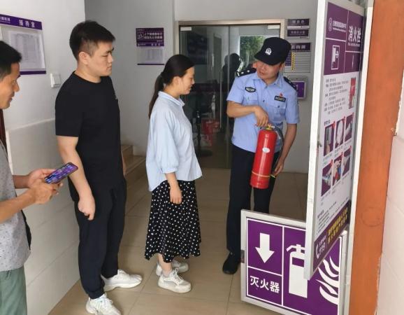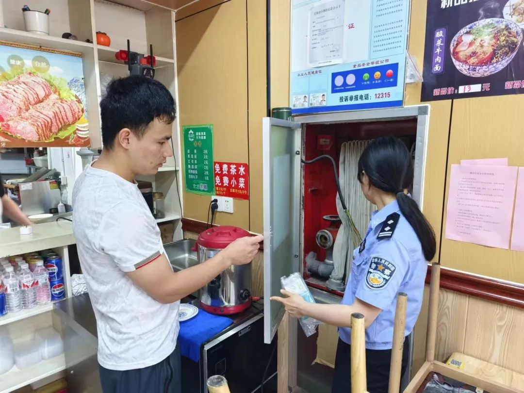 △ 新站分局磨店派出所社区民警深入辖区内经营性场所,开展消防安全专项检查行动,并现场进行讲解消防器材的使用方法。