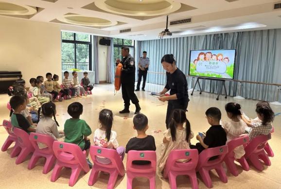 △高新分局高新派出所联合特警支队,前往高新区绿城育华幼儿园开展校园安全防范宣传活动,向幼儿讲解消防和防溺水安全常识。