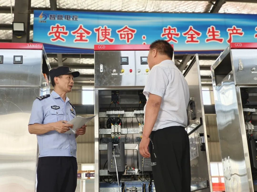 △肥东县公安局民警辅警走进辖区企业,开展消防安全检查,指导企业严密内部安全防范。