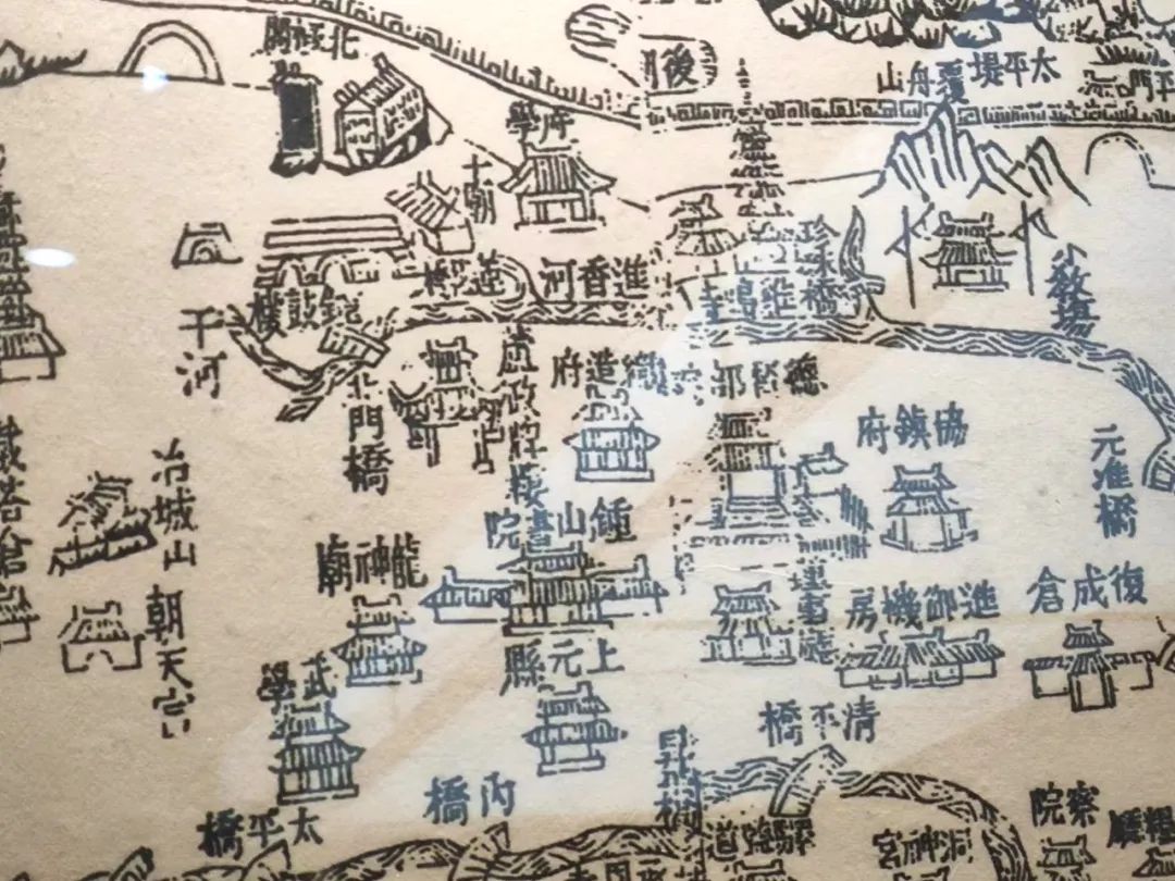 乾隆元年《江南通志》中的南京地图。进香河上方的“府学”,曹寅曾经参与修建。今天的进香河已被改为暗沟,只存路名,但巧的是,进香河路边依然是大学校园,为东南大学四牌楼校区。穿过四牌楼,沿太平北路一路向南,到长江路,就到了这趟Citywalk的终点——江宁织造博物馆。