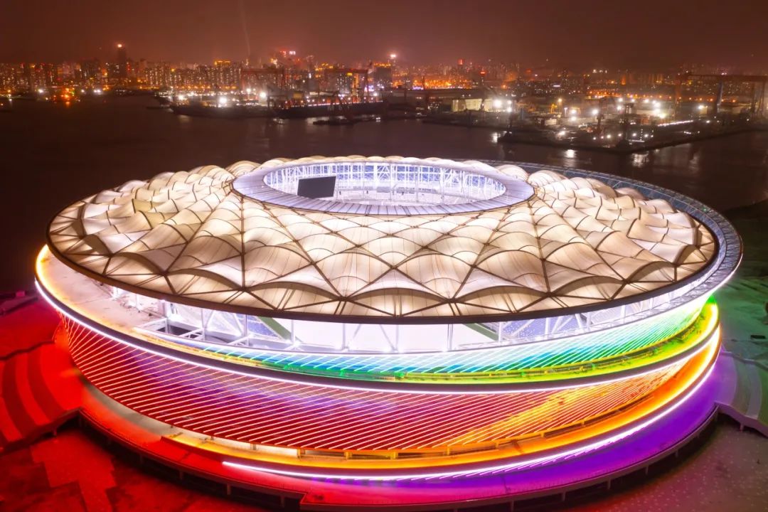 在夜晚整个球场流光溢彩、极致浪漫