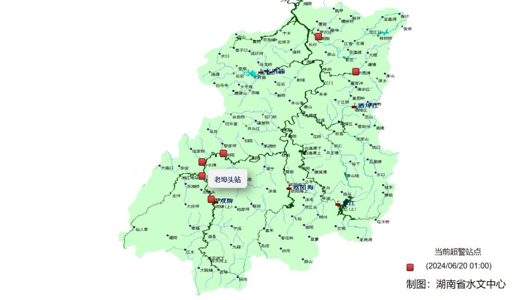持续降雨导致河湖水位上涨。省水文水资源勘测中心根据湘江流域当前雨水情 ,预测 6月20日上午湘江长沙站将出现洪峰, 预计洪峰水位35.3米 ,低于警戒水位0.7米。受湘江顶托影响,浏阳河等湘江支流水位将不同程度上涨 。