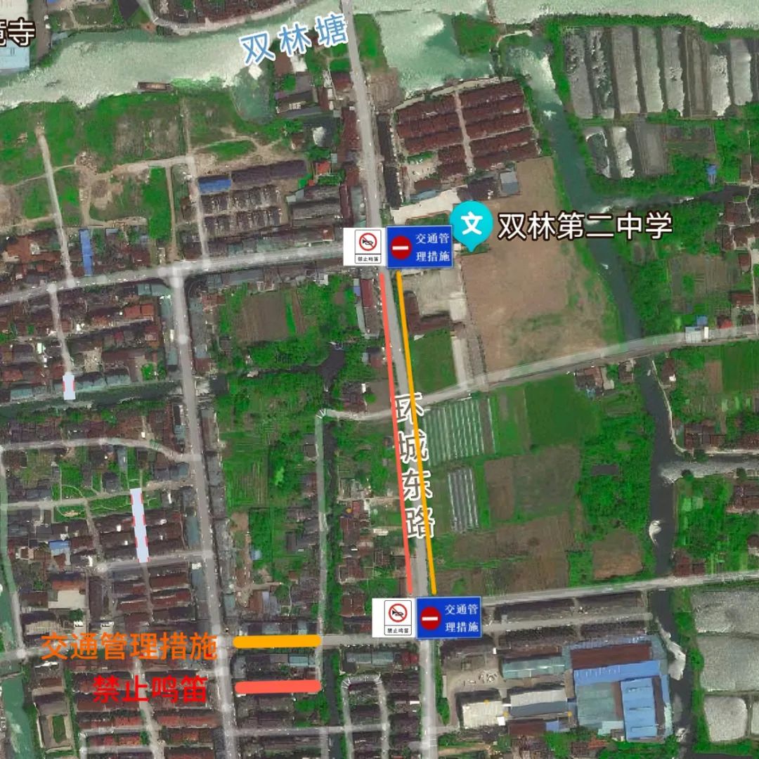 双林二中三新线建德路路口至三新线和睦路路口禁止鸣笛,考试接送车辆在二中停车场有序停靠,考试期间对新线建德路路口至三新线和睦路路口交通管理措施。