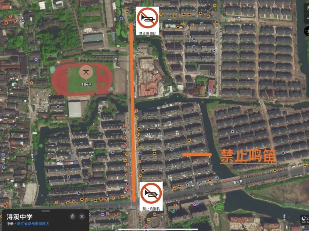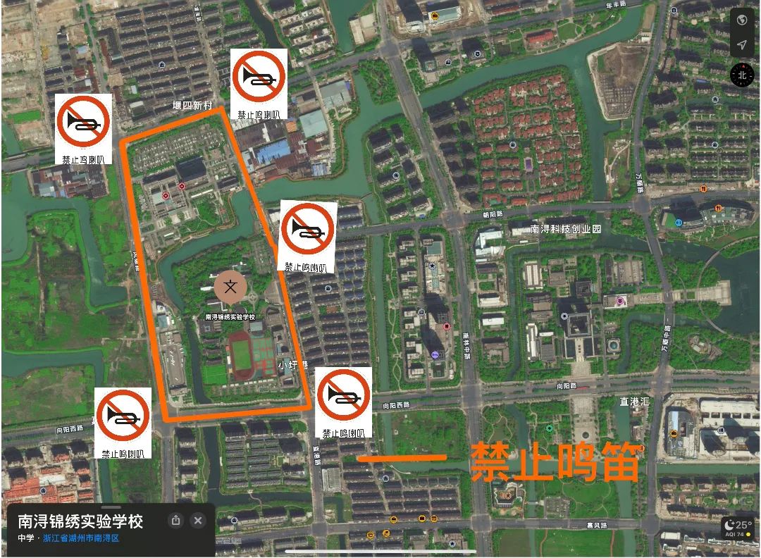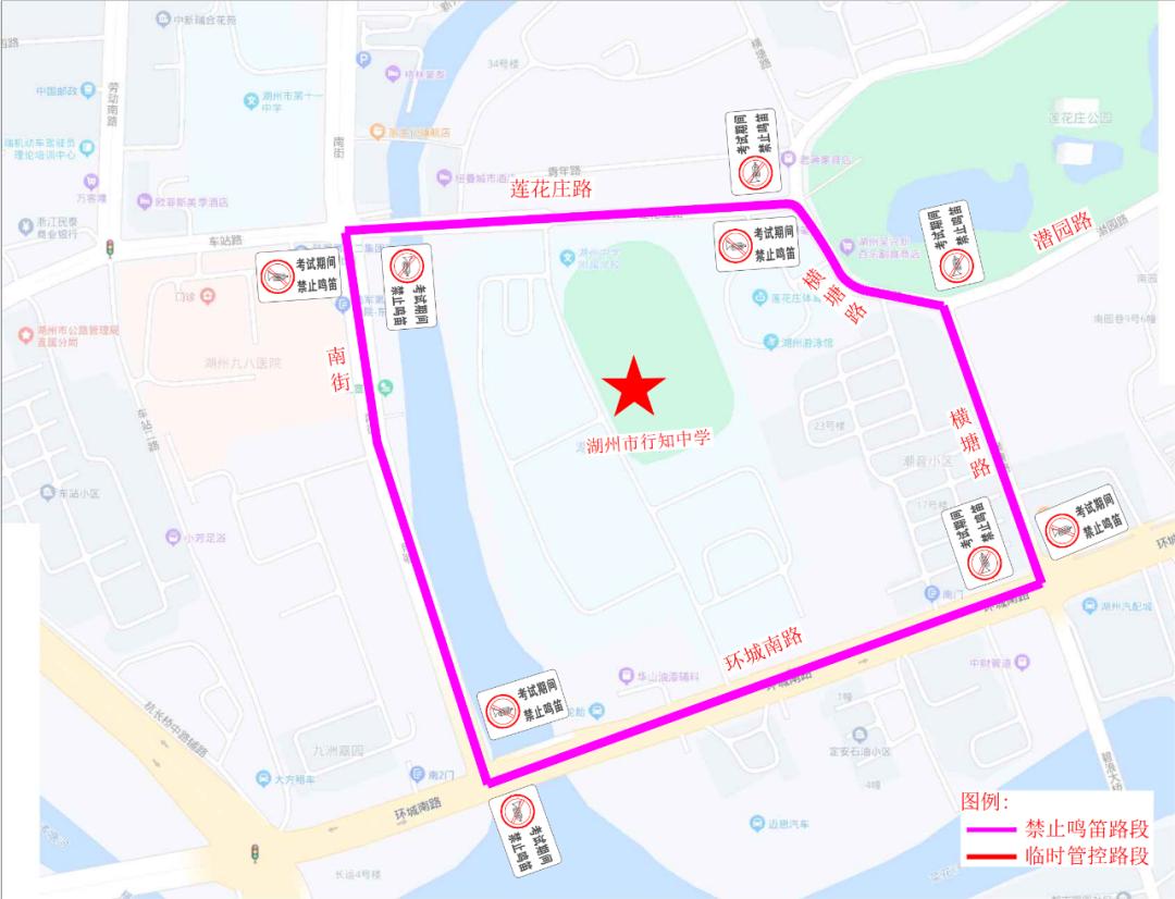 湖州市行知中学对莲花庄路(南街至横塘路)、横塘路(莲花庄路至潜园路)、环城南路(横塘路至南街)、南街(环城南路至莲花庄路)路段实行禁止鸣笛。