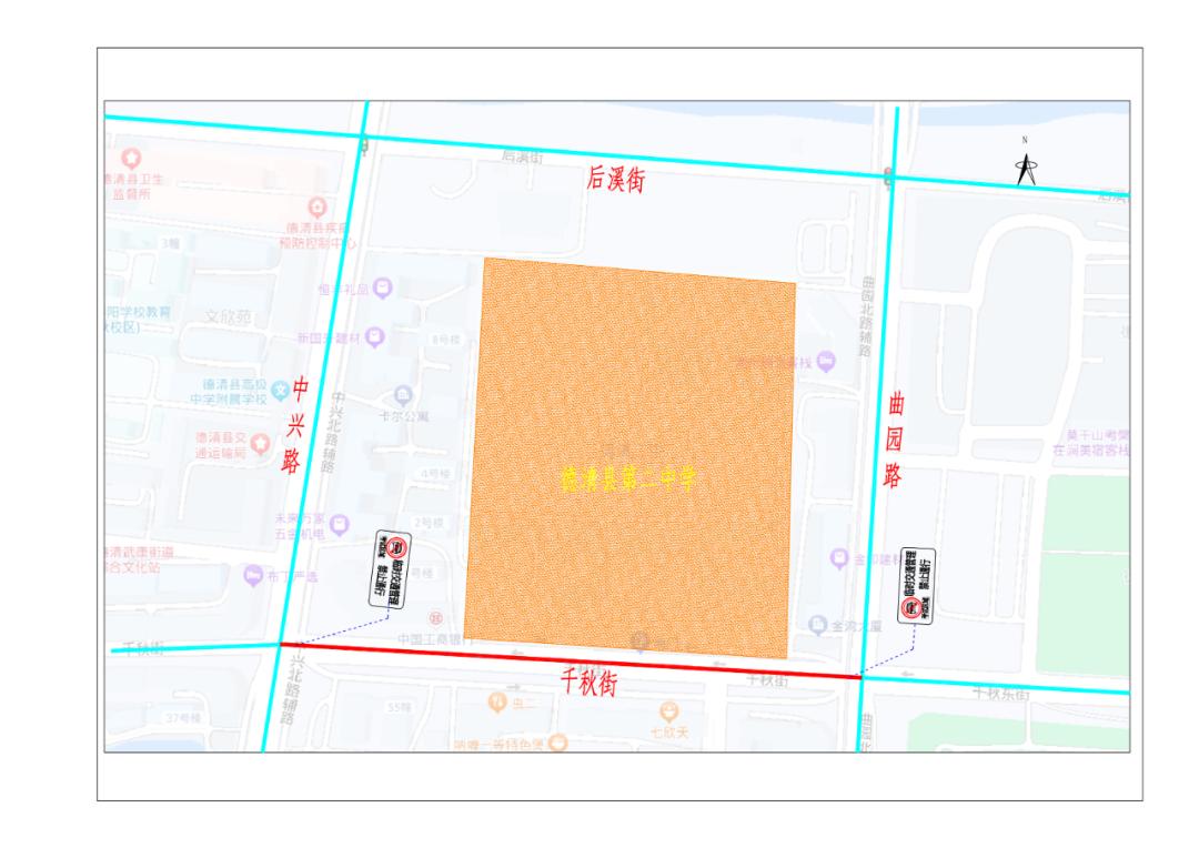 德清县考试期间,德清县第二中学、德清县武康中学、德清县千秋初级中学、德清县第三中学、德清县第四中学考场周边道路禁止鸣笛。届时,请广大机动车辆绕行。