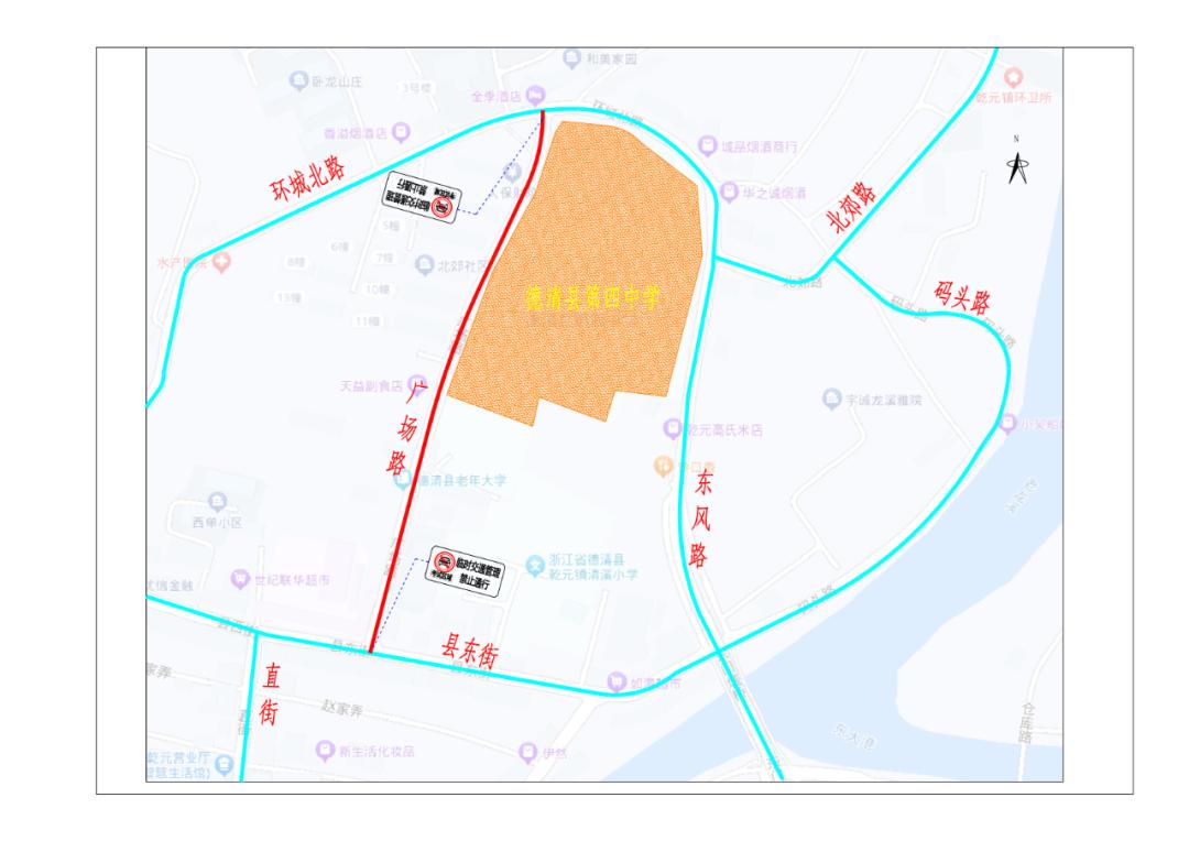 德清县第四中学广场路(环城北路至县东街路段)
