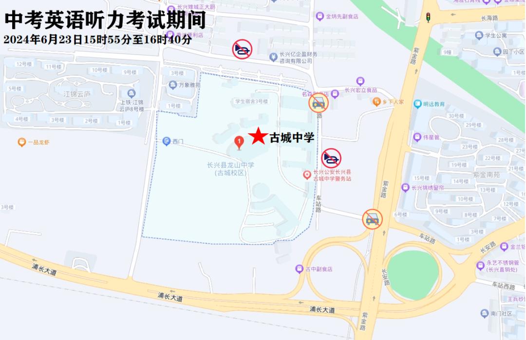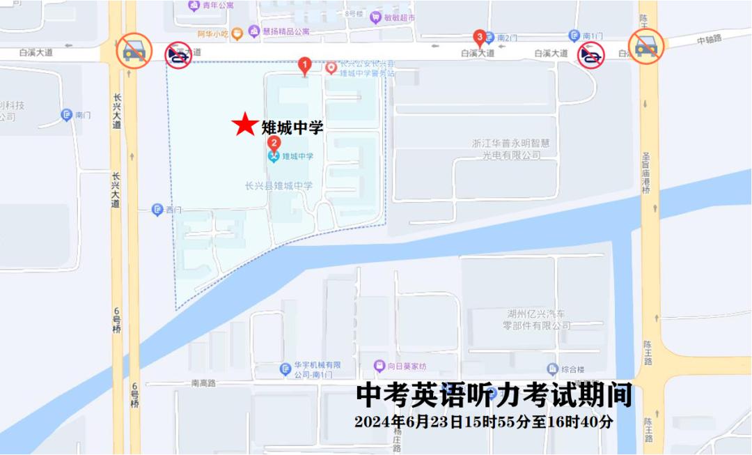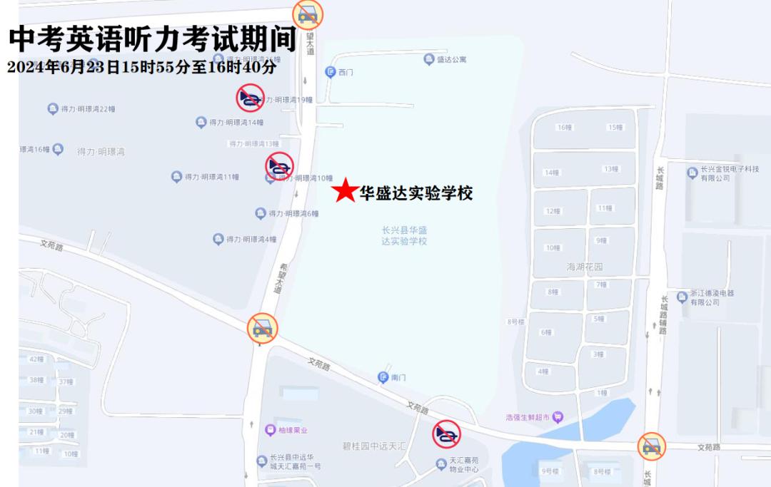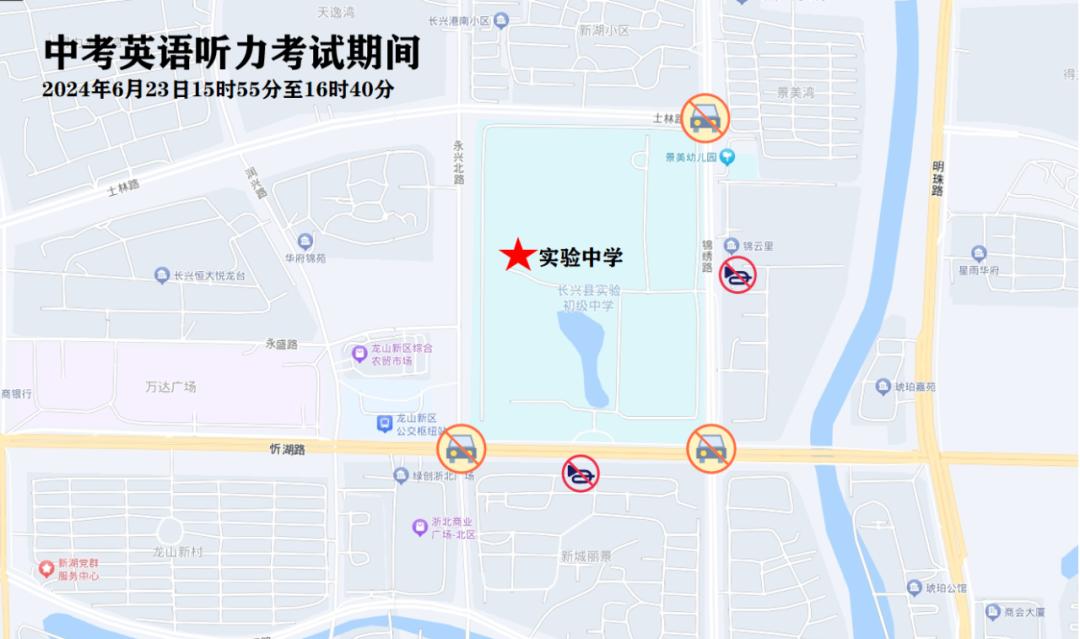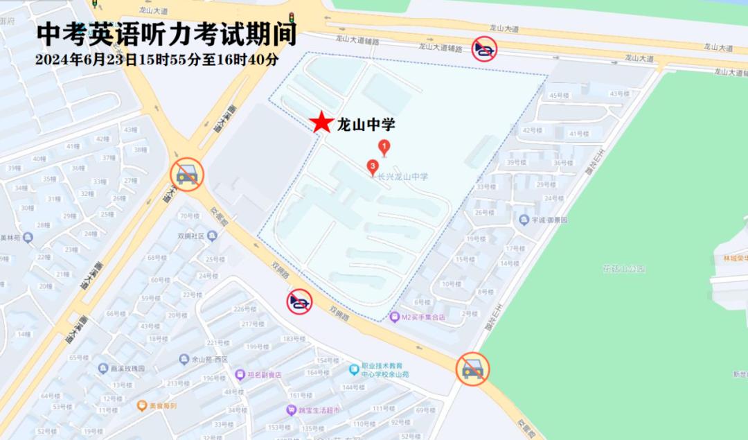 6月23日下午15:55-16:40,中考外语听力考试期间对考点周边路段采取禁鸣喇叭等交通管理措施,确保考场周边环境安静。温馨提醒