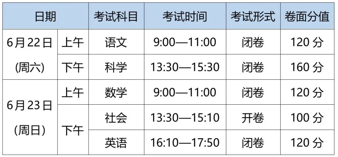 2024年中考时间表安排
