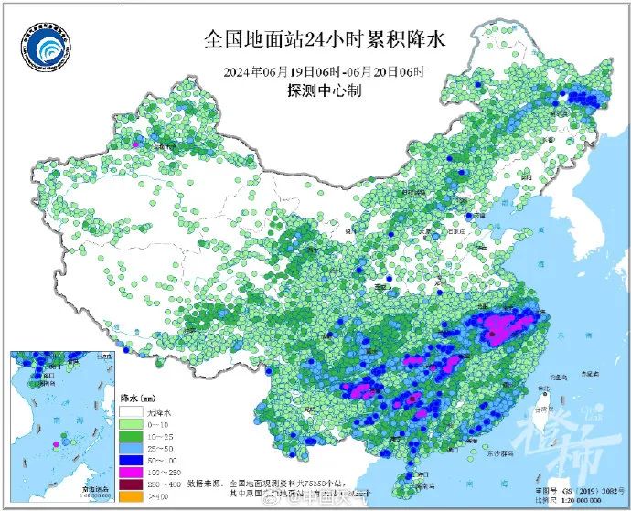 这波梅雨真的来袭汹汹,气象监测显示,昨日(6月19日),安徽、浙江、广西、贵州等地出现强降雨,其中安徽芜湖、铜陵、宣城、黄山,浙江杭州、嘉兴,江西上饶、宜春,湖南长沙、常德、怀化,广西桂林、柳州、贺州,贵州六盘水、安顺、贵阳、毕节等地局地达到大暴雨级别(100~265毫米)。
