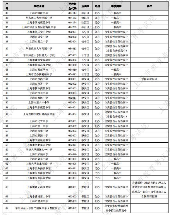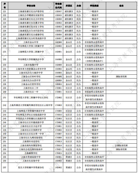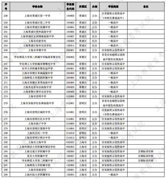 2024上海市289所高中招生学校名单