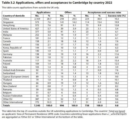 中国学生也是牛津大学和剑桥大学国际学生人数中最多的群体。在以剑桥为例,在2022年共提交了2169份申请,比去年增多了8%,占据了申请人数的28.7%。