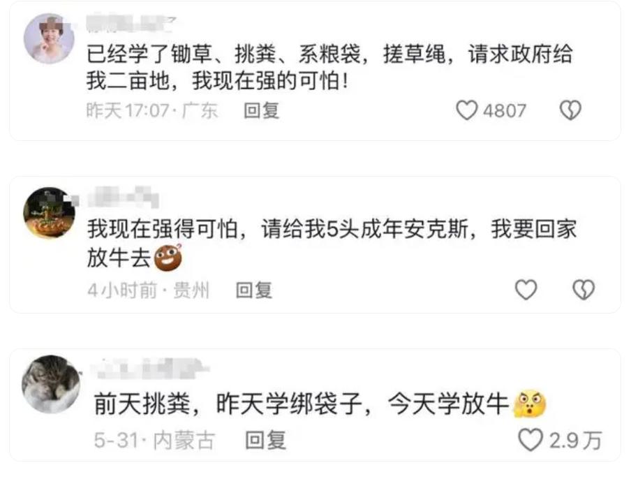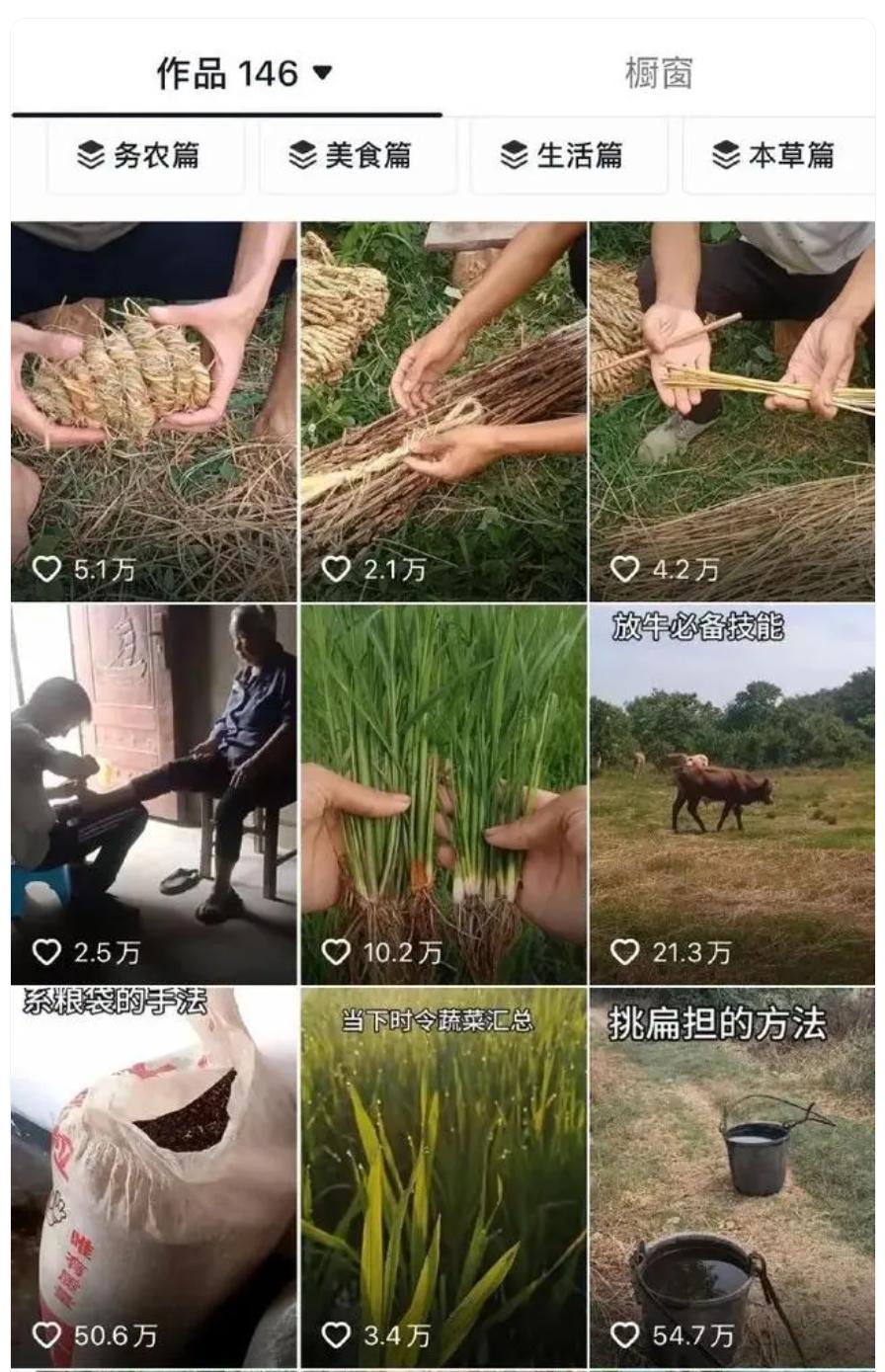 最近,一些务农类短视频在网络上引发关注。比如,一位名叫小康的博主手把手在线教授务农知识:“打要子”“系粮袋”“菜瓜打顶”等,网友表示“快给我一块地我现在强得可怕”。账号中,“放牛必备技能”“挑扁担的方法”等内容的连续更新,让网友直呼“老师教得太快要跟不上了”,吃播视频“茶叶鱼的做法”“野藜蒿炒腊肉”更是让网友们惊呼“菜不会种饭还不会吃吗”“隔着屏幕都流口水”。