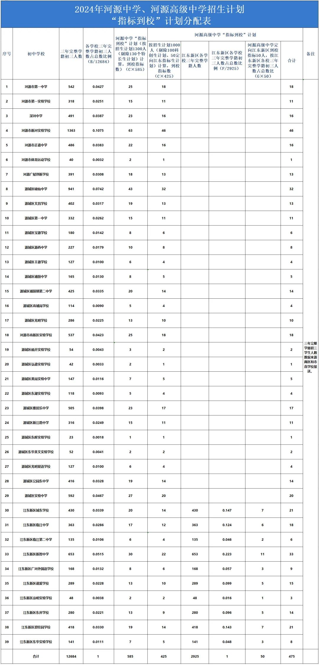 附件:2024年河源中学、河源高级中学“指标到校”计划分配表