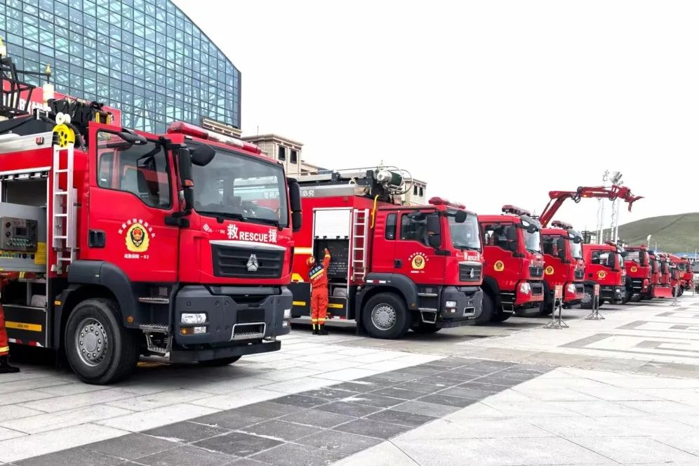 此次集中列装仪式共配发各类消防车辆14辆、装备5959件套,包含:多功能抢险救援车、举高喷射消防车、城市主战消防车以及个人防护、山岳救援、冰面救助、应急通信等装备器材,为全市消防救援器材装备力量注入了新鲜血液,标志着那曲市消防救援支队装备建设水平迈上了一个新的台阶。▌来源:那曲市消防救援支队