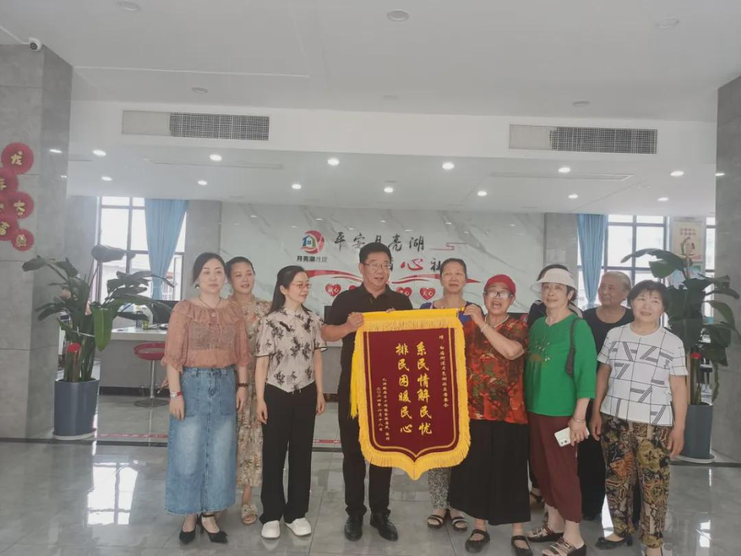 2024年6月19日的下午,月亮湖社区大厅迎来了一群满脸笑容的居民,将一面写有“系民情解民忧 排民困暖民心”字样的锦旗送到社区周书记手中。做代表的69岁的朱奶奶感动得说:“社区为我们做了一件大好事啊,以后我们再也不怕下雨满身泥泞了,真是太感谢了,感谢社区为我们解决了多年的困扰啊,以后可以大胆放心地阔步走路了。”