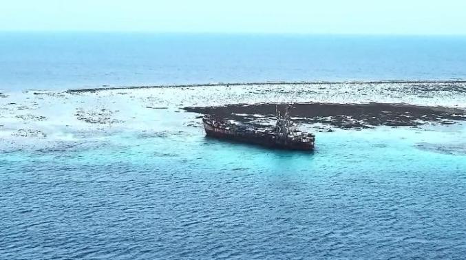 菲律宾海军“马德雷山”号航拍图 图源:环球时报-环球网“有关报道再次印证‘菲方声称对其在仁爱礁‘坐滩’军舰运补的是生活物资’完全是谎言。”林剑在回应环球时报-环球网记者提问时表示,事实上,正如中方多次指出,菲方一直在向其非法“坐滩”军舰运送建筑材料,甚至武器弹药,企图大规模维修加固,以实现对仁爱礁的永久占领。菲方的行径严重侵犯中国主权,中方绝不接受,将依法依规予以坚决应对。