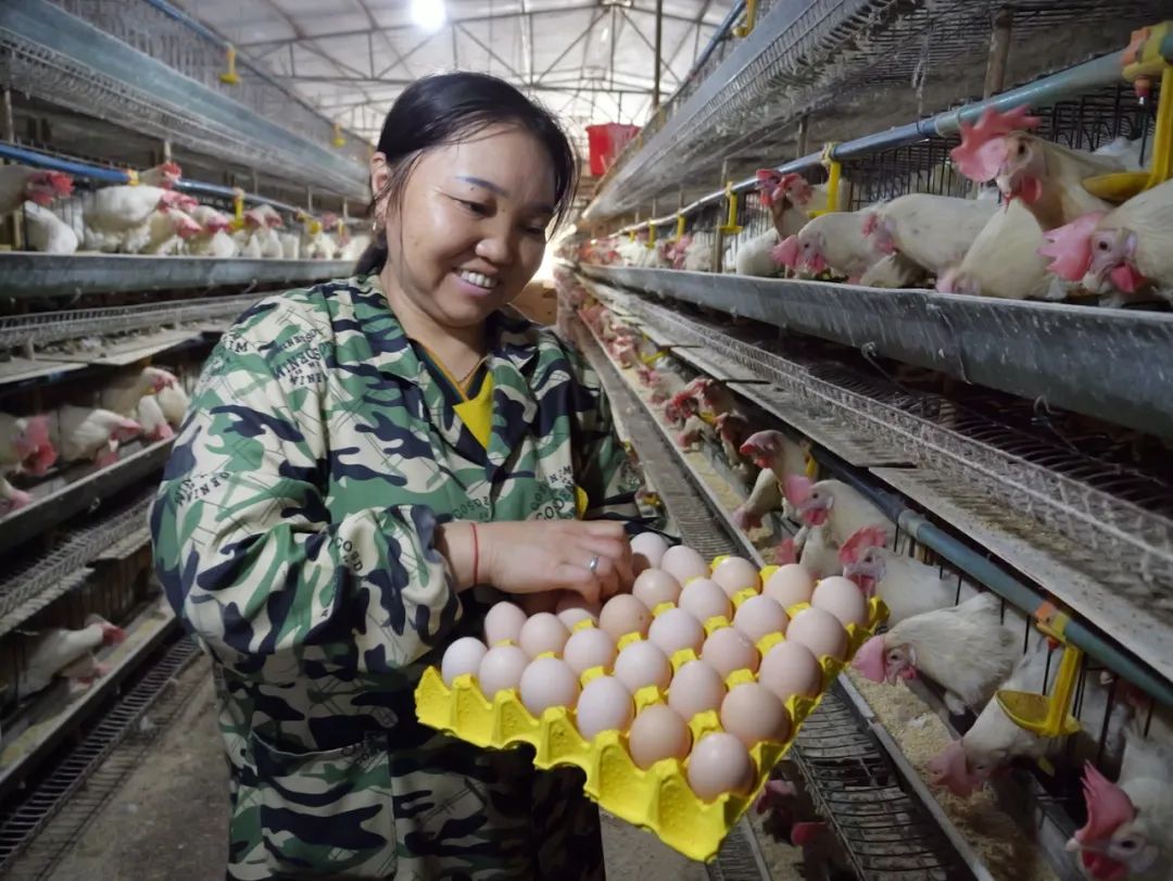 发展特色产业是青山村实现乡村振兴的关键。在青山村蛋鸡养殖场内,工人们穿梭于鸡舍之间,精心饲养着每一只蛋鸡。为了确保鸡蛋以最佳状态送往市场,工人们把每一项工作都做得一丝不苟,捡蛋、装箱、打包、上车等工序一气呵成。蛋鸡场为村民们带来了希望和机遇,对于这份在本村就能获得的稳定工作,他们心中充满了无尽欢喜。