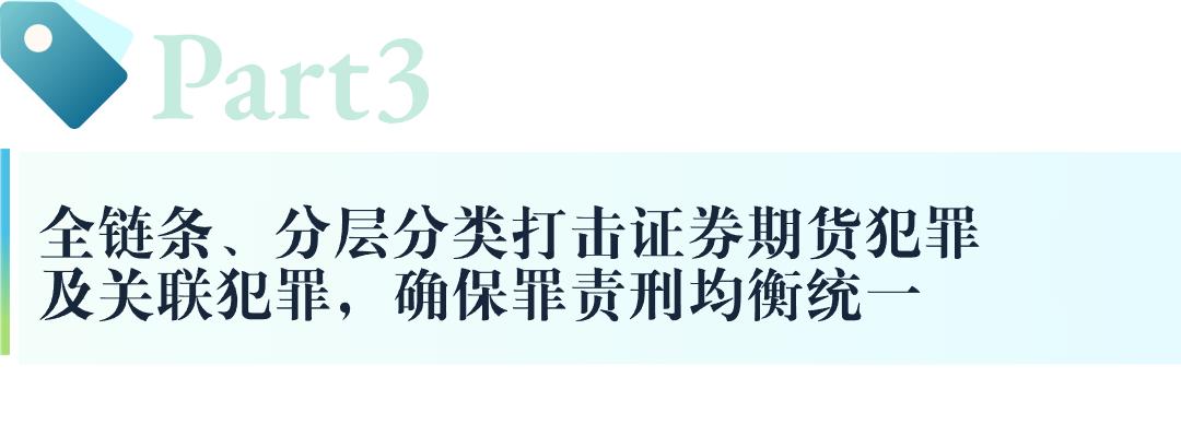 针对证券期货违法犯罪行为出现的新特点、新趋势,人民法院等司法办案机关应当遵循全链条、全方位打击原则,在打击操纵市场、内幕交易、欺诈发行等犯罪行为的同时,也要同步依法从严打击非法配资、“黑嘴荐股”、洗钱犯罪、配合造假以及证券发行审核等关键领域腐败行为,从而形成全链条打击、全方位惩治的管控格局。