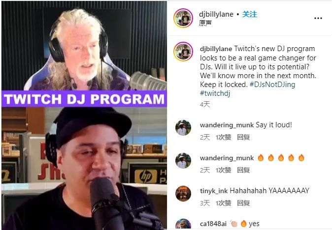 6月17日,海外DJ频道916junglist创始人Billy Lane 在社交媒体发文称:“Twitch是否会改变直播的游戏规则,下个月见分晓。”