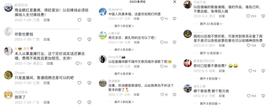 根据《直播环境下录音制品“获酬权”付酬机制研究课题报告》显示,目前虽然有53.4%的主播知晓在直播中使用录音制品需要向权利人支付版权费,但从付费意愿来讲,只有42.42%的主播比较愿意向权利人支付版权费。当有音乐人涉及到维权官司时,还是会有网友将“版权付费”和“碰瓷”认知混淆。