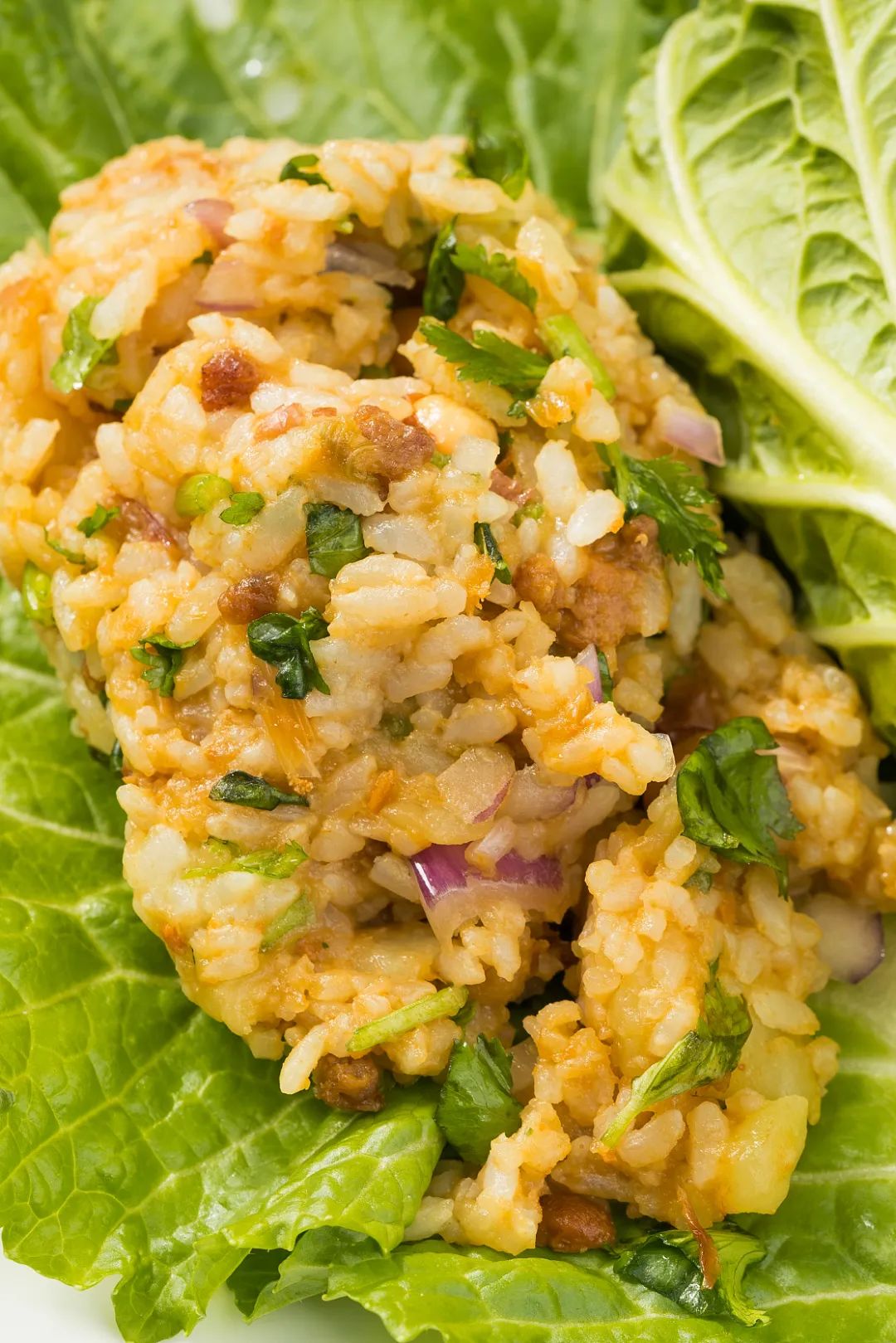 入夏后,除了拌饭、泡饭等吃法,吉林人还会把大米、土豆、茄子、鸡蛋酱混合,把它们包在白菜叶中,做成饭包,咸香满足。
