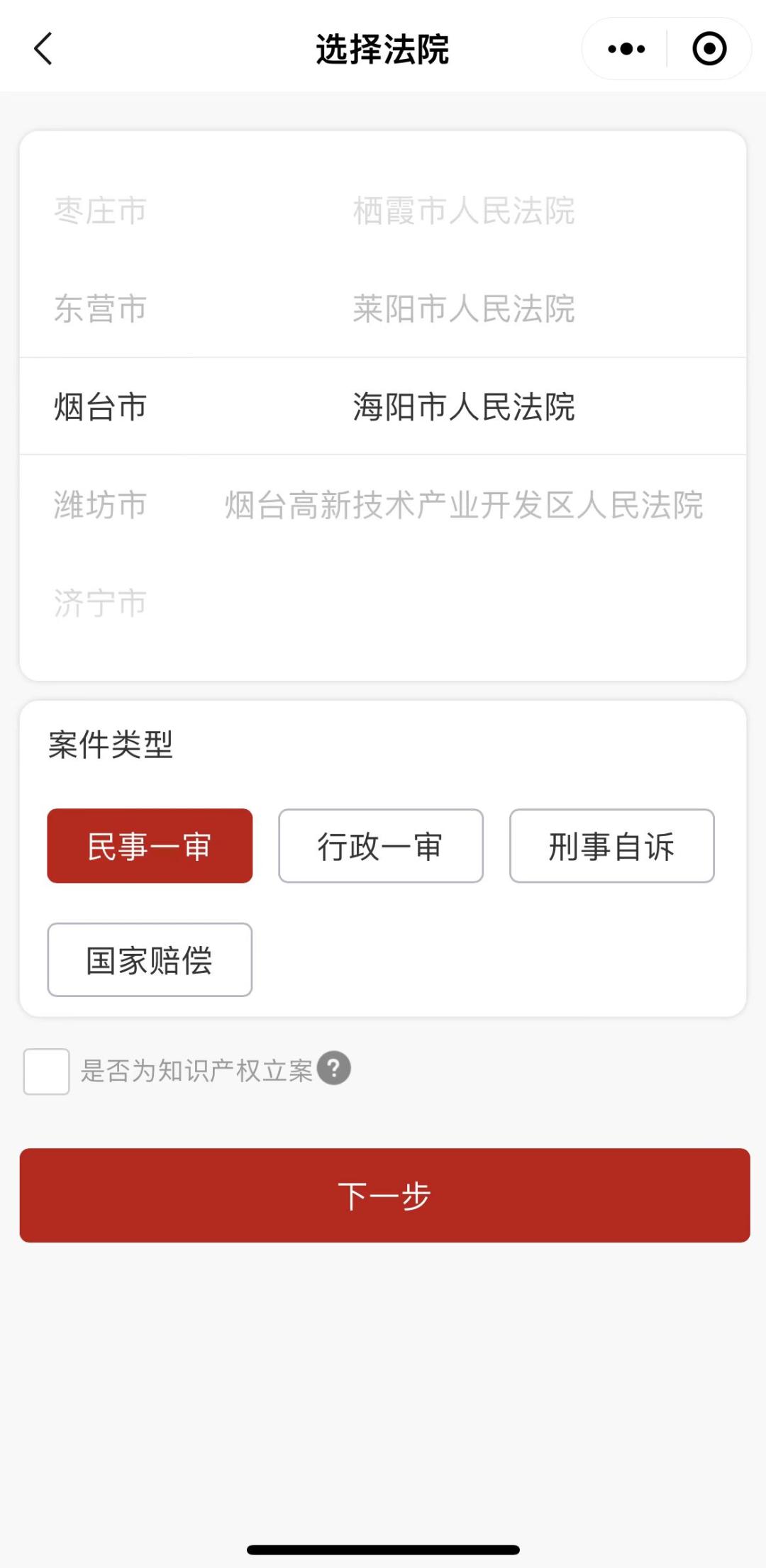 第三步第二步:选择管辖法院