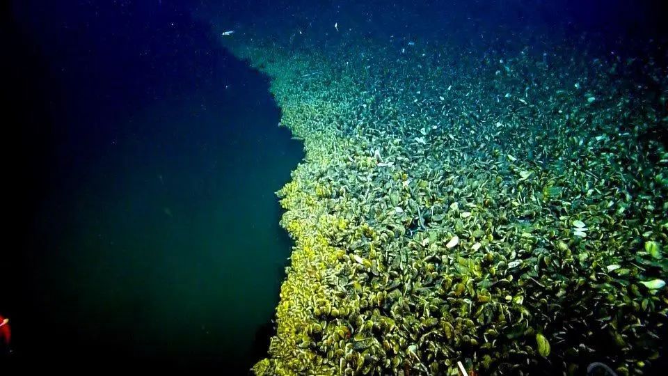 为什么海底湖泊旁有贻贝?我们前面提到过“绝望热水浴缸”旁边生活着贻贝,其实其它海底湖泊周围也经常都会生活着密密麻麻的贻贝。