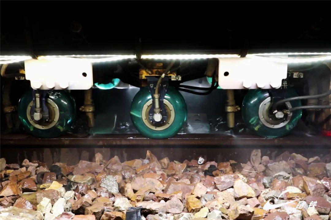 GTC-80J型钢轨探伤车车体两侧各有3个探轮