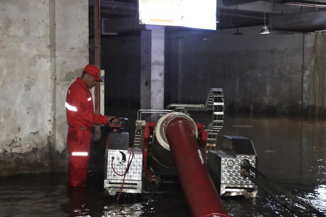 6月20日,受暴雨影响,重庆市巴南区浩立碧海湾车库出现内涝险情。中国安能重庆救援基地出动7人、3台套装备前往处置。