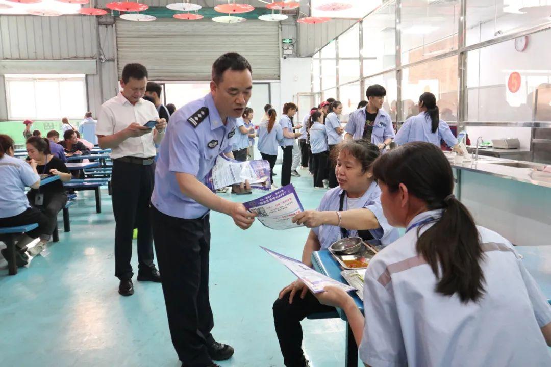 “我们财务人员网上遇到所谓的‘老板’叫转账,一定要与老板电话或者见面核实后才能转账!”打造企业厂区“饭堂警务”模式,利用企业员工中午午餐时间,深入企业食堂、周边餐馆等人员聚集地,针对性地开展冒充企业老板、网贷类诈骗防范宣传,全面推广“餐桌反诈文化”,掀起企业反诈浪潮。