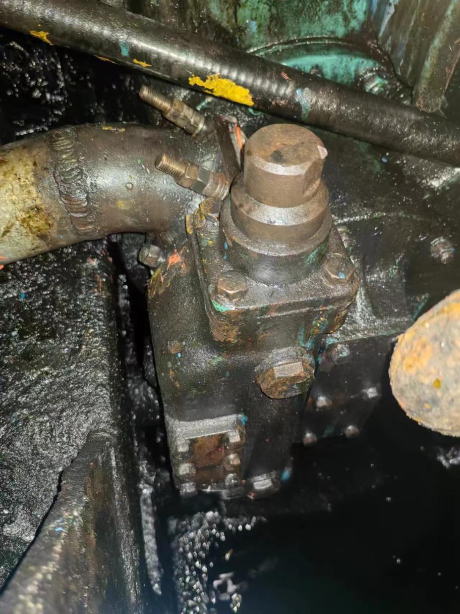 值班轮机员立即对主机滑油系统进行巡检排查,发现主机滑油压力严重失压至0.12Mpa,该轮主机滑油正常工作压力为0.37-0.42Mpa,经初步检查判定船舶主机滑油泵(机带泵)部件可能存在内部泄压情况,轮机员立即切换至备用电动滑油泵后主机滑油压力恢复正常,主机工况正常。同时,船长第一时间向福州海事局VTS报告险情,福州海事局指挥中心立即启动应急预案,安排船舶就近前往港内锚地抛锚对主机滑油泵(机带泵)进行抢修。