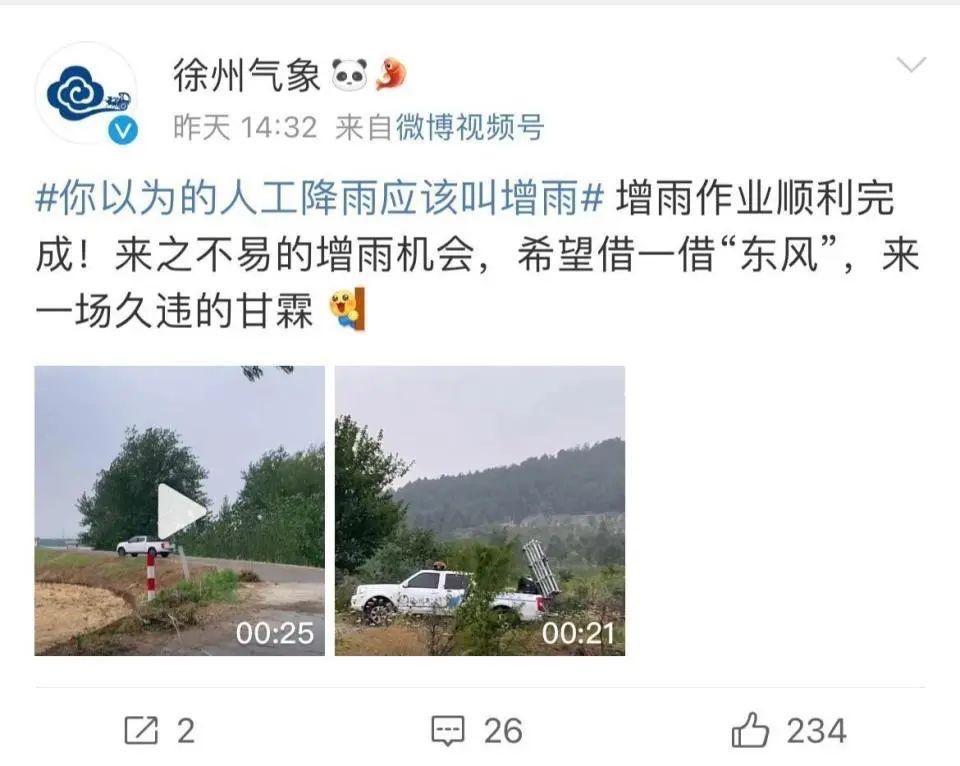 6月21日,江苏徐州一场人工增雨作业,使徐州大部分地区的旱情得到缓解,可这场“及时雨”却引起很多网友不满,一些网友在徐州气象的微博下留言称:“这场降雨为什么非得挑在这个时候,难道是故意的?”“就不能改一下时间吗?”