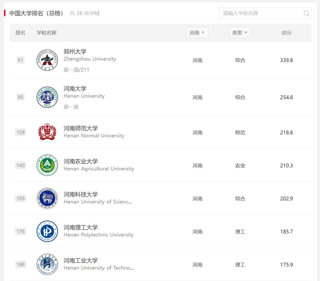 在河南众多高校中,排名最高的郑州大学、河南大学,分别位列全国第51位、95位,更多都在500名之外,与其他经济大省悬殊极大。