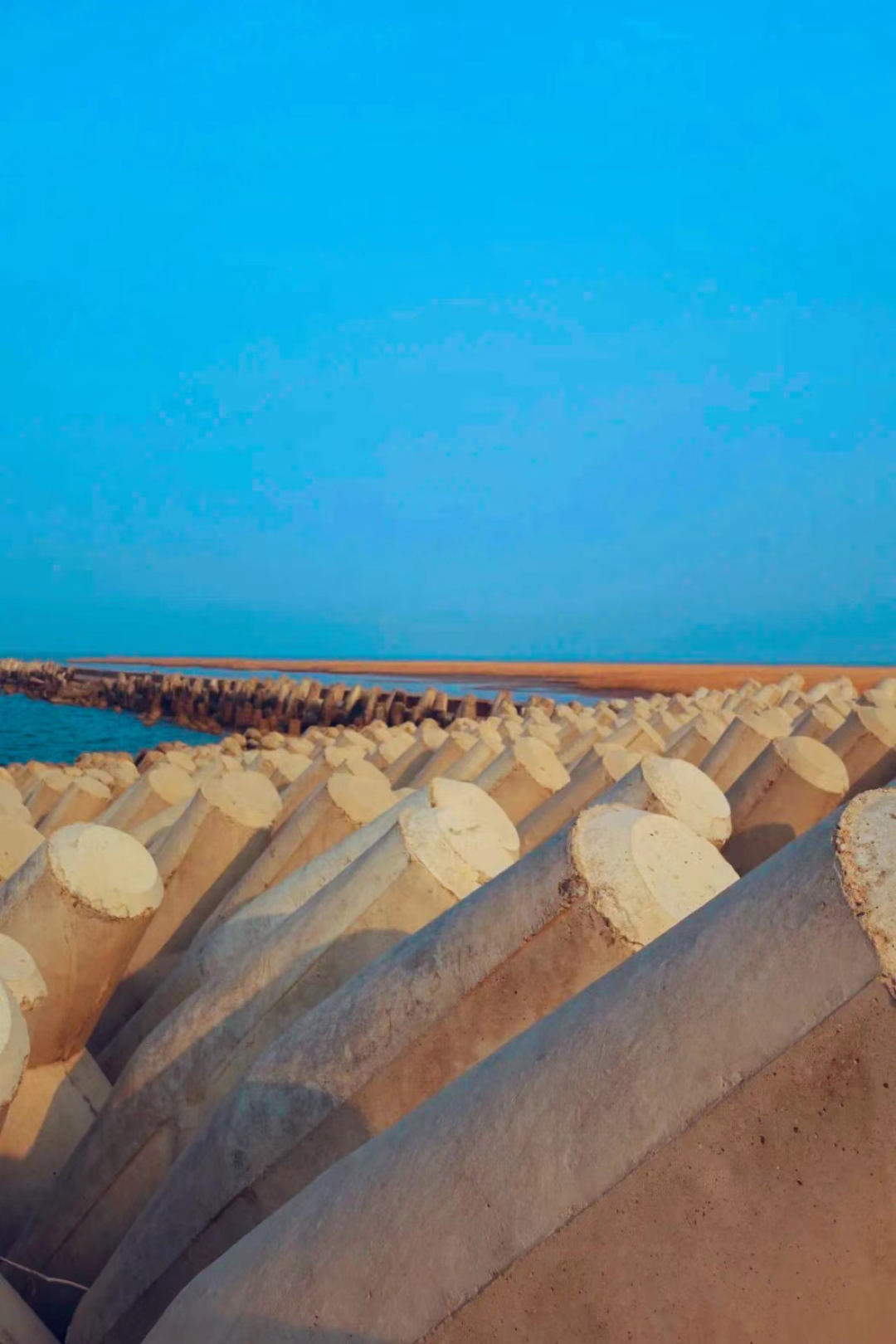 到孤东海堤,走上被海浪吹蚀的陈旧栈道,沿着海岸线,仿佛能直接走进大海深处。在长堤尽头,听海浪诉说浪漫。